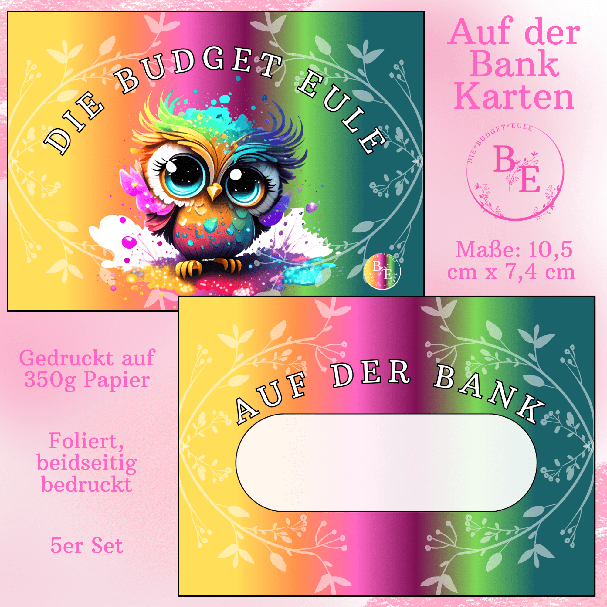 Kleine folierte Kärtchen zum selber beschriften wie viel auf der Bank ist.