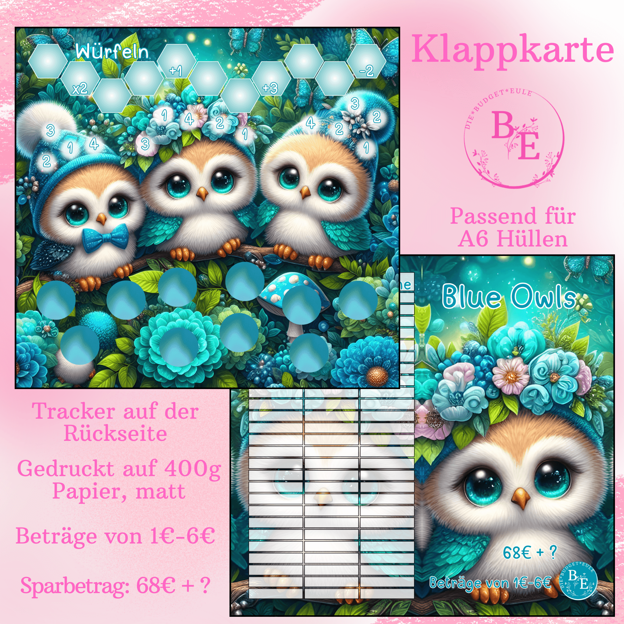 Eulen Punkte 6 Eulen!2er Klappkarte zum rechnen, würfeln und rubbeln.