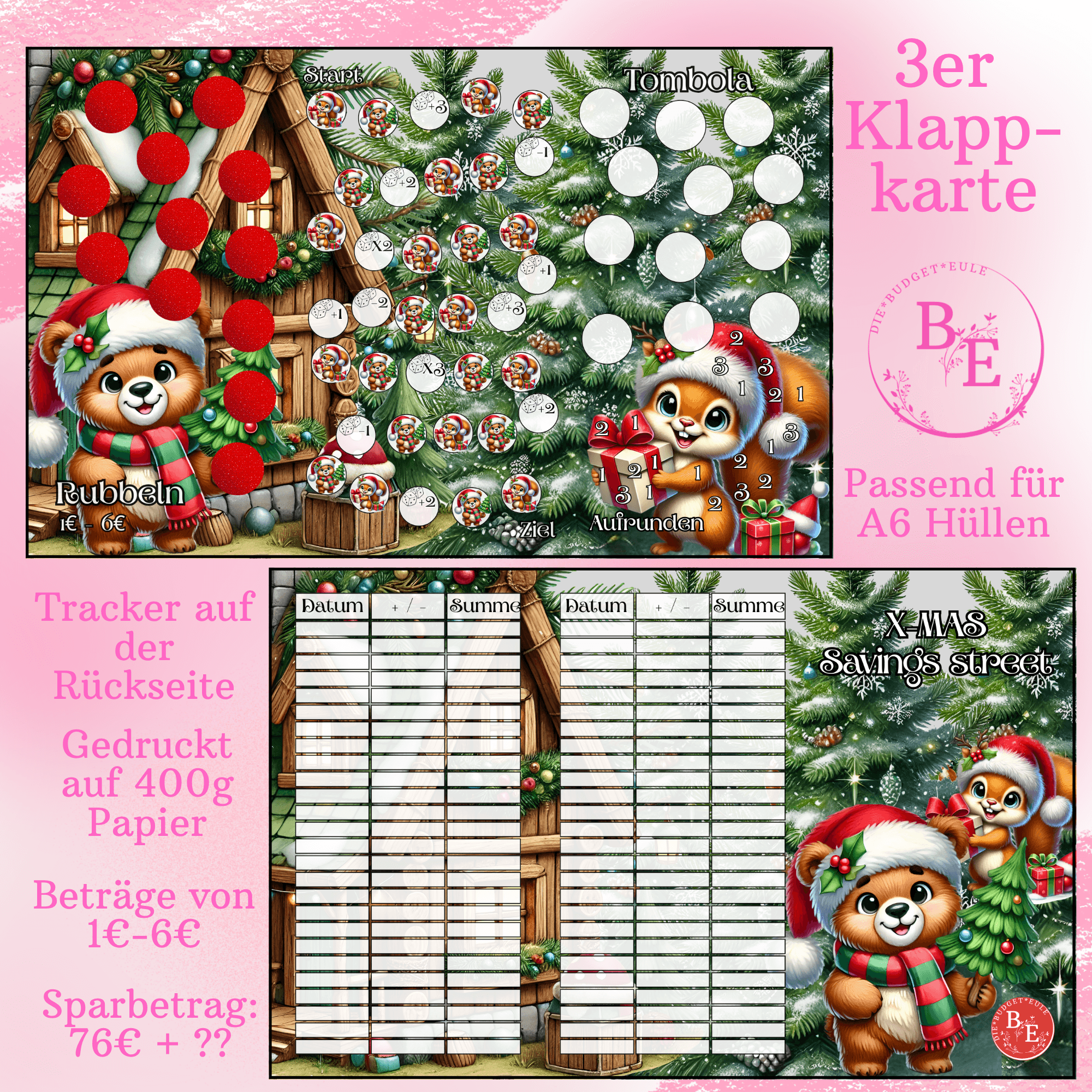 3er Klappkarte mit Sparweg zum würfeln, abstreichen, rubbeln und Losen.